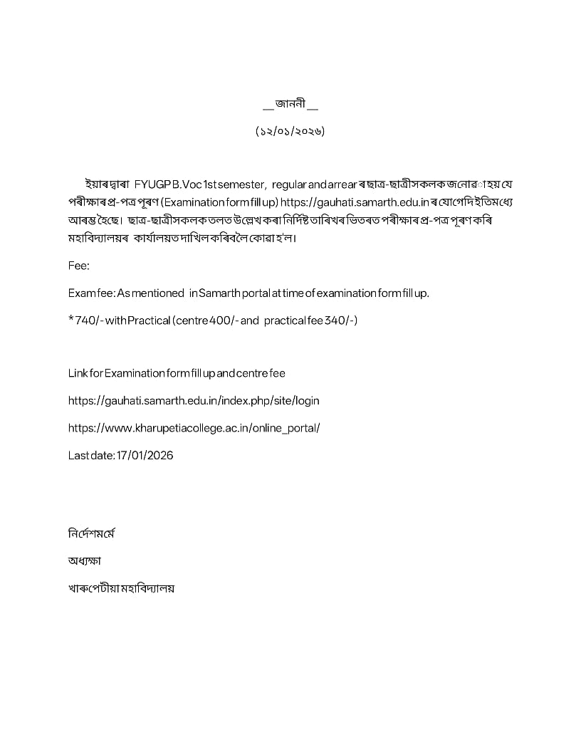 Kharupetia College is one of the premier institutions of higher education in Darrang District. The College has been set up with the painstaking efforts of some academically conscious personalities and visionaries of social change and sustainable development who felt the need of an institution of higher education in a socio-economically backward area of the District like Kharupetia in the year 198..